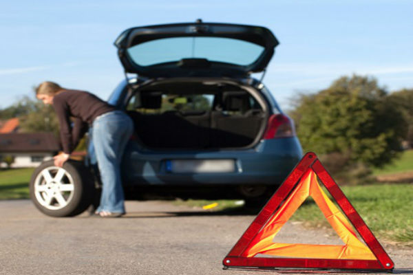 No importa si la llanta se poncho de día o de noche, debes colocar el triangulo reflejante y encender las luces intermitentes. De esta forma indicarás a los demás conductores que tu auto está parado en la carretera.